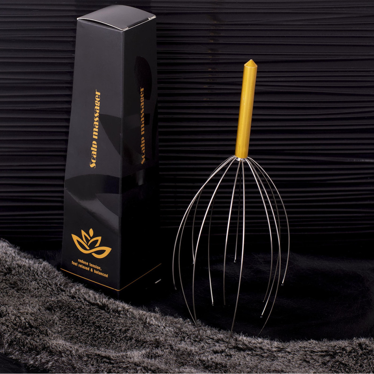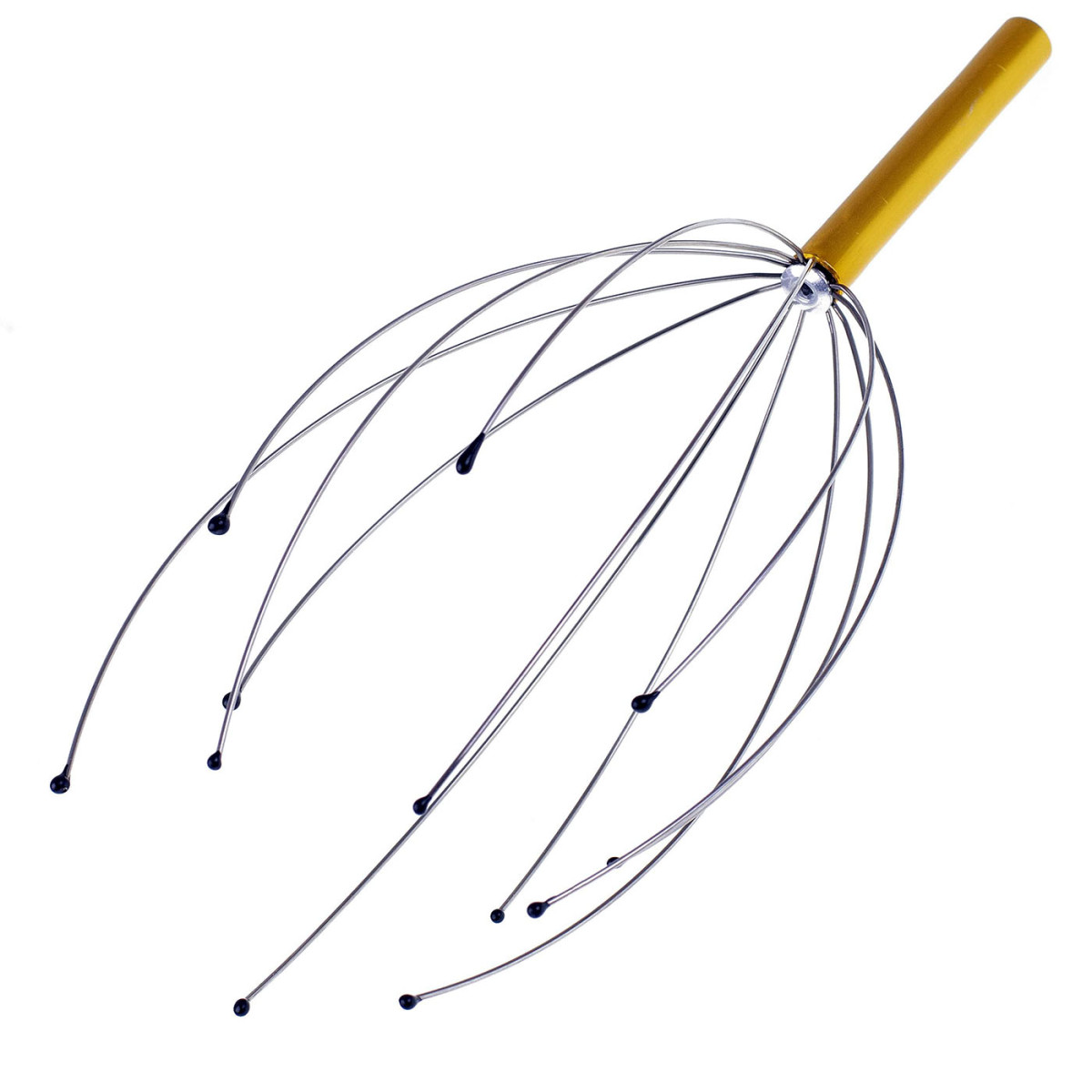 Šim luksusa galvas, skausta un kakla masāžas aparātam ir 12 elastīgi metāla stieņi ar mīkstiem gumijas uzgaļiem, kas maigi stimulē galvas ādas receptorus. Rezultāts ir tūlītēja relaksācija, endorfīnu pieplūdums un viegla laimes sajūta. Ideāla izvēle tiem, kas vēlas ātri atbrīvoties no stresa, spriedzes vai vienkārši izbaudīt patīkamas sajūtas.