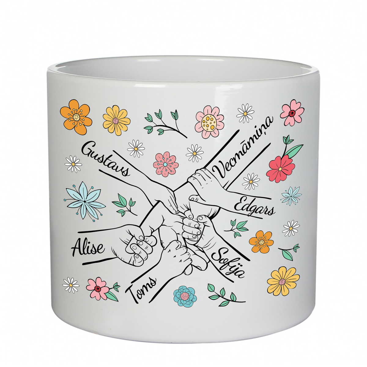Keramikas puķu pods "Vecmāmiņa un mazbērni" ar mazbērnu vārdiem