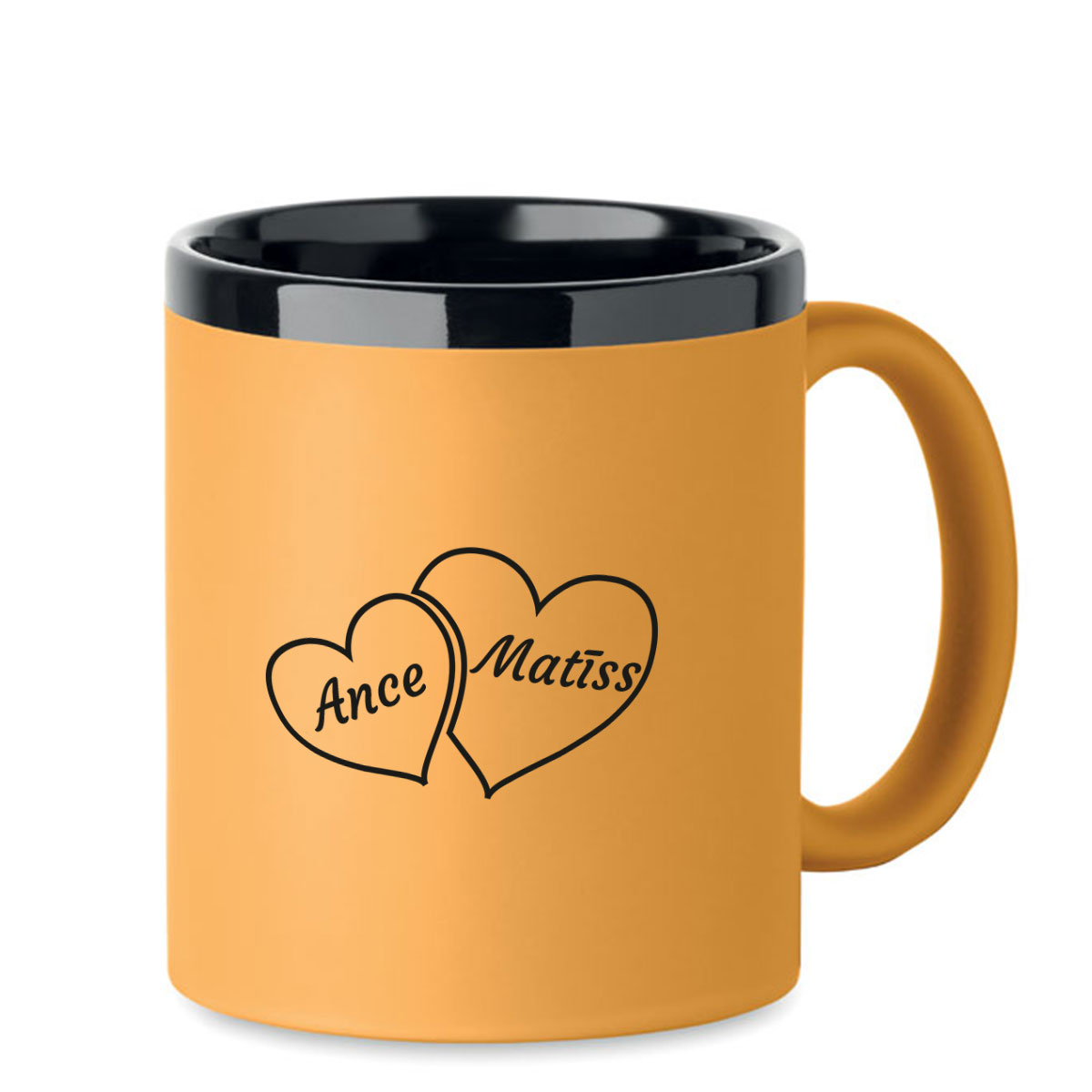 Graviruots krūze "Hearts" ar Jūsu izvēlētajiem vārdiem – praktiska un unikāla dāvana Jums un Jūsu mīļotajai personai.