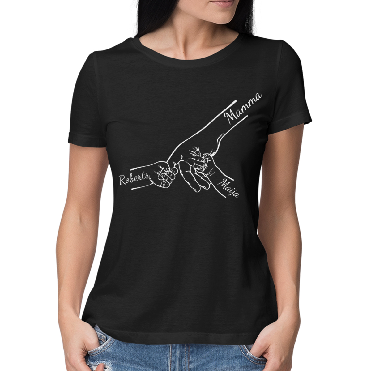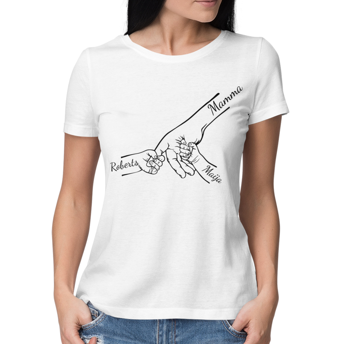 Sieviešu T-krekls "Mamma un bērni" ar izvēlētiem bērnu vārdiem