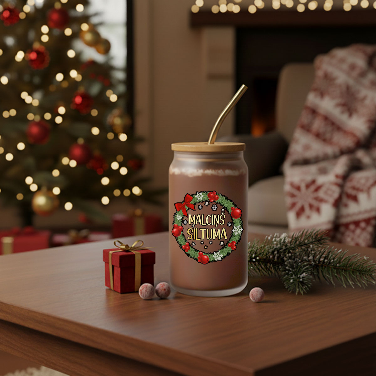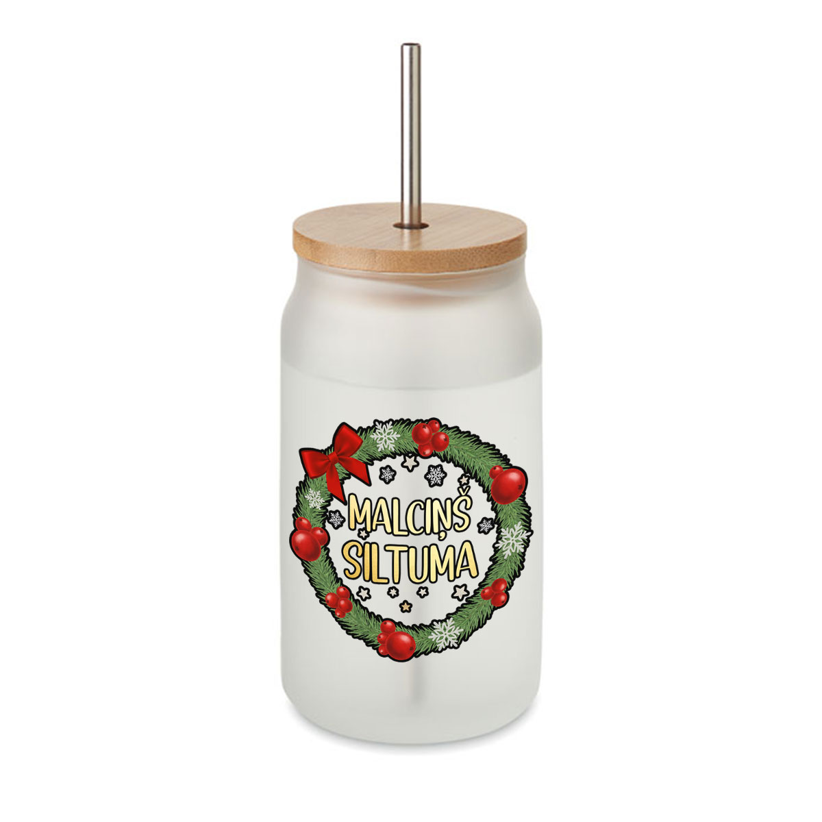 Stikla dzeramā burka ar metāla salmiņu "Malciņš siltuma" - mājīga izvēle svētkiem un ikdienai!